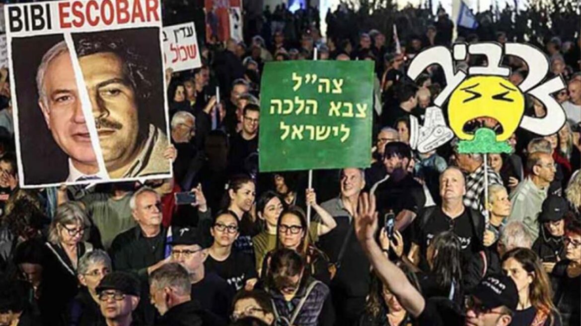 আন্তর্জাতিক ডেস্ক: ইসরায়েলের প্রধানমন্ত্রী বেঞ্জামিন নেতানিয়াহুর পদত্যাগের দাবিতে রাজধানী তেল আবিবে হাজার হাজার হাজার মানুষ বিক্ষোভে অংশ নিয়েছেন। শনিবার রাতে অনুষ্ঠিত এই বিক্ষোভে বিভিন্ন শ্রেণি-পেশার মানুষ অংশ নেন।